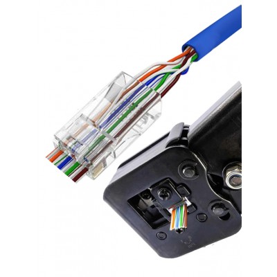 Pass-Thru Multi-Modular Plug Tool For Crimps, Strips & Cuts For modular plugs: 8P8C/RJ-45, 6P6C/RJ-12,6 P4C/RJ-11