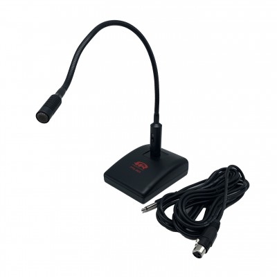 Come with mic cable (XLR male to XLR Female) base and goosed mic