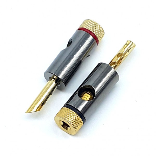 GOLD BANANA JACK FOR 16GA to 10GA WIRE, 2-Pack *Sold as a Pair* | Cover Color Line: Black or Red, 2pcs per bag