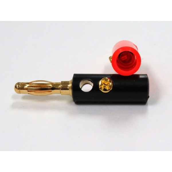 Banana Plug Gold Plated For Wire 16GA to 12GA, 2-Pack *Sold as a Pair* | Cover: Black or Red, 2pcs per bag