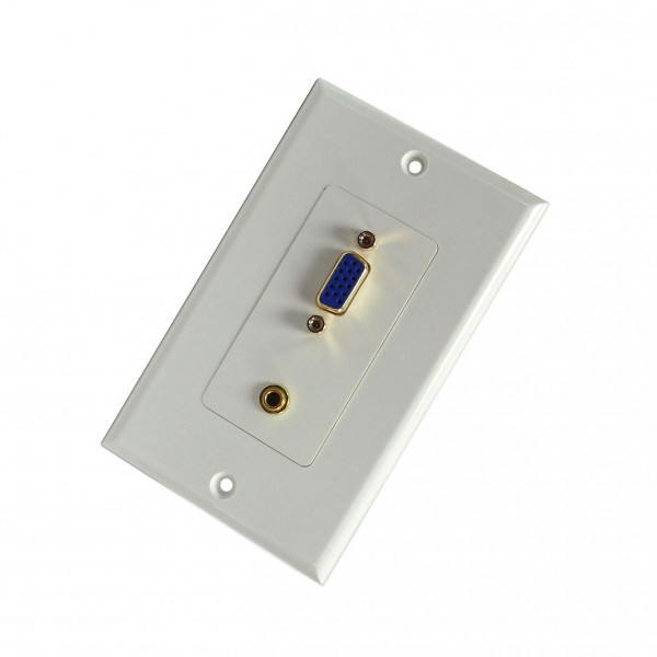 1 VGA Female + 1*3.5 Mini Stereo Female decora wall plate, 3.5 Mini Stereo plugs Color: Gold Plated, Decora Style Plate, Screw set included, Color: White