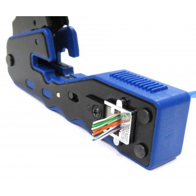 Pass-through Multi-Modular Plug Tool for Crimps, Strips & Cuts the Ethernet cables