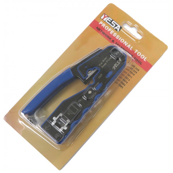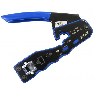 Pass-through Ethernet Multi-function Crimping Tool for CAT6 / CAT5e Plugs Pass-through Multi-Modular Plug Tool for Crimps, Strips & Cuts the Ethernet cables For modular plugs: 8P8C/RJ-45, 6P6C/RJ-12,6 P4C/RJ-11