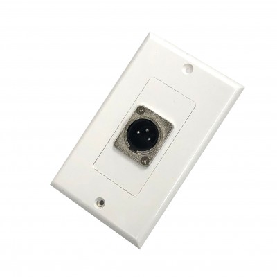 3 Pin Mic. male wall plate, Silver XLR connector, Decora Style Plate, Screw set included, Color: White